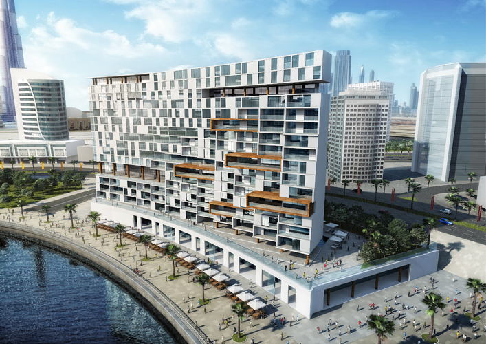 Located in Business Bay with water frontage, the 20 storey residential tower that houses 260 apartments with 44,350 sq.m. GFA. The apartments vary between 1,2 and 3 bedroom. A retail mall of 1500 sq.m. is located on the ground floor with 20 shops. One car park that includes 400 cars is located in the basement. |