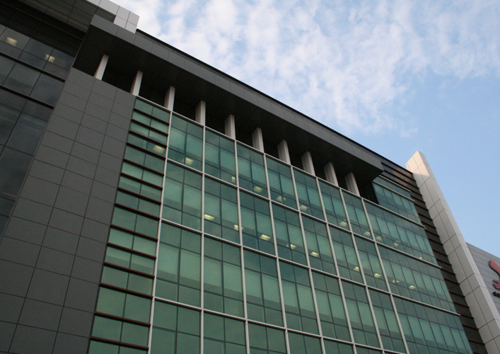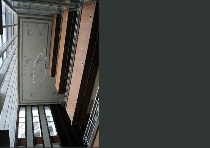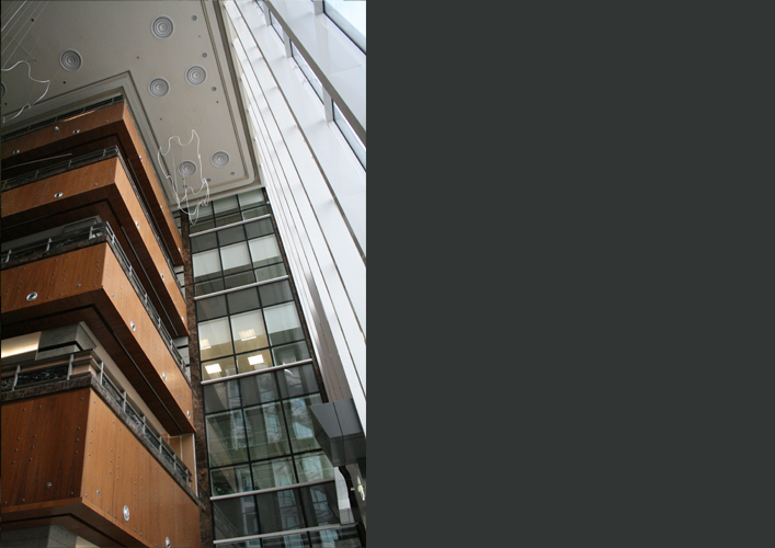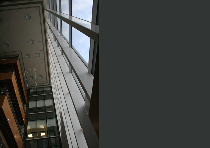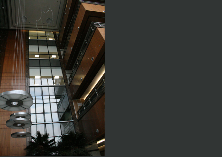 Efficient plan of regular rectilinear 8.5x8.5 module with a central atrium where the main entrance of the headquarter is located. |