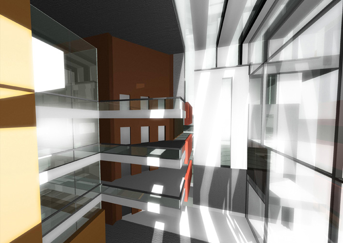 G+6 Floors of office spaces divided on 2 wings of L shaped plan linked together through a full height atrium. |
