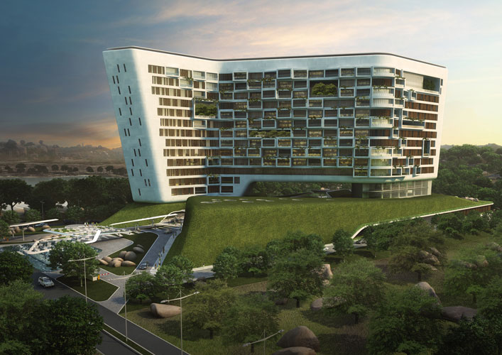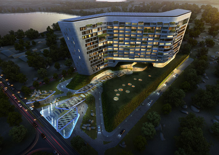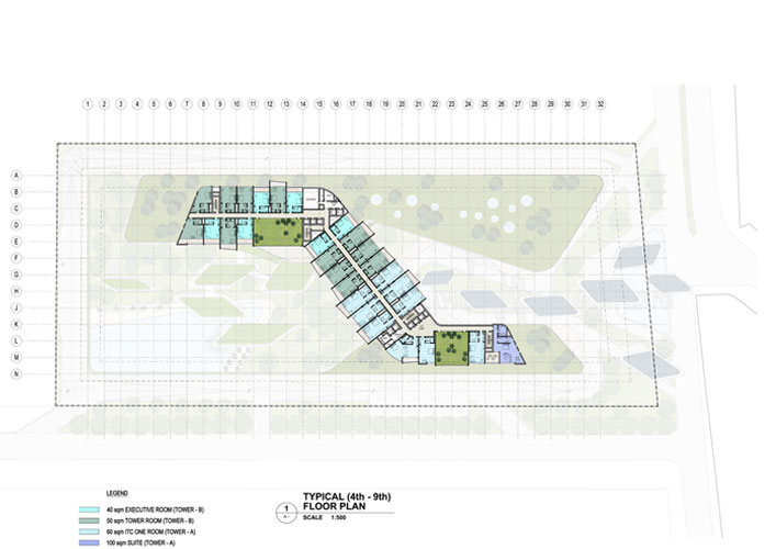 ITC Welcomegroup, is India’s premier chain of luxury hotels with over 100 hotels in more than 80 destinations. ITC envisage an iconic landmark 5 star hotel in Hyderabad. The site measures approximately 19250 sq.m and is strategically located at Raidurg, Madhapur Hyderabad in the heart of the Hi-Tech City, the hub for IT & ITES industry and approx. 20 km from New Rajiv Gandhi International Airport. The hotel is planned to be a landmark in Hyderabad and to be rated as LEED platinum aligned with ITC general policy with their hotels.